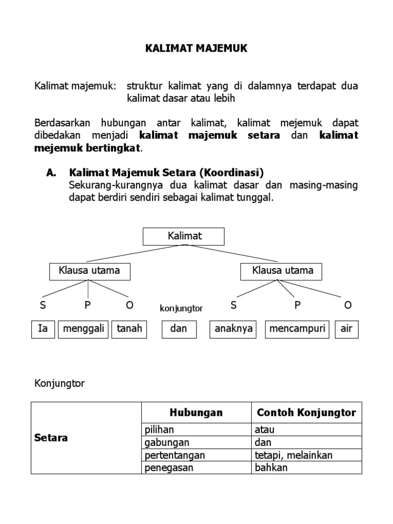 Kalimat pertama berisi penyatuan sedangkan kalimat kedua berisi pernyataan kontras dari kalimat sebelumnya. Hubungan ilmu pengetahuan dengan moral (agama). Kalimat majemuk bertingkat hubungan waktu. Dalam kalimat majemuk bertingkat juga terdapat hubungan pertentangan. Konjungsi koordinatif penanda hubungan pertentangan konjungsi ini menandakan bahwa dua unsur (kata, frasa, atau klausa) yang digabungkan merupakan dua unsur yang berlawanan. Aini bilang dirinya tidak takut sama sekali. Di kalimantan timur, bupati dikabarkan telah mengeluarkan ratusan hak/izin/hph konsensi penebangan kayu bagi 100 perusahaan skala kecil senilai rp. Kalimat mejemuk bertingkat hubungan perbandingan. Adik bukan membaca buku pelajaran melainkan buku komik kesayangannya. Konjungsi sebaliknya digunakan untuk menyatakan pertentangan dapat digunakan di antara dua buah klausa. Ketika terjadi pertentangan tersebut, maka supremasi hukum di ketika terjadi pertentangan di antara batang tubuh dengan pancasila, maka hal tersebut haruslah dicegah agar tidak terjadi bentur. Dalam pelajaran bahasa indonesia, majas pertentangan adalah satu dari. Majas pertentangan bermakna arti sebenarnya akan bertentangan dengan kalimat yang diungkapkan.